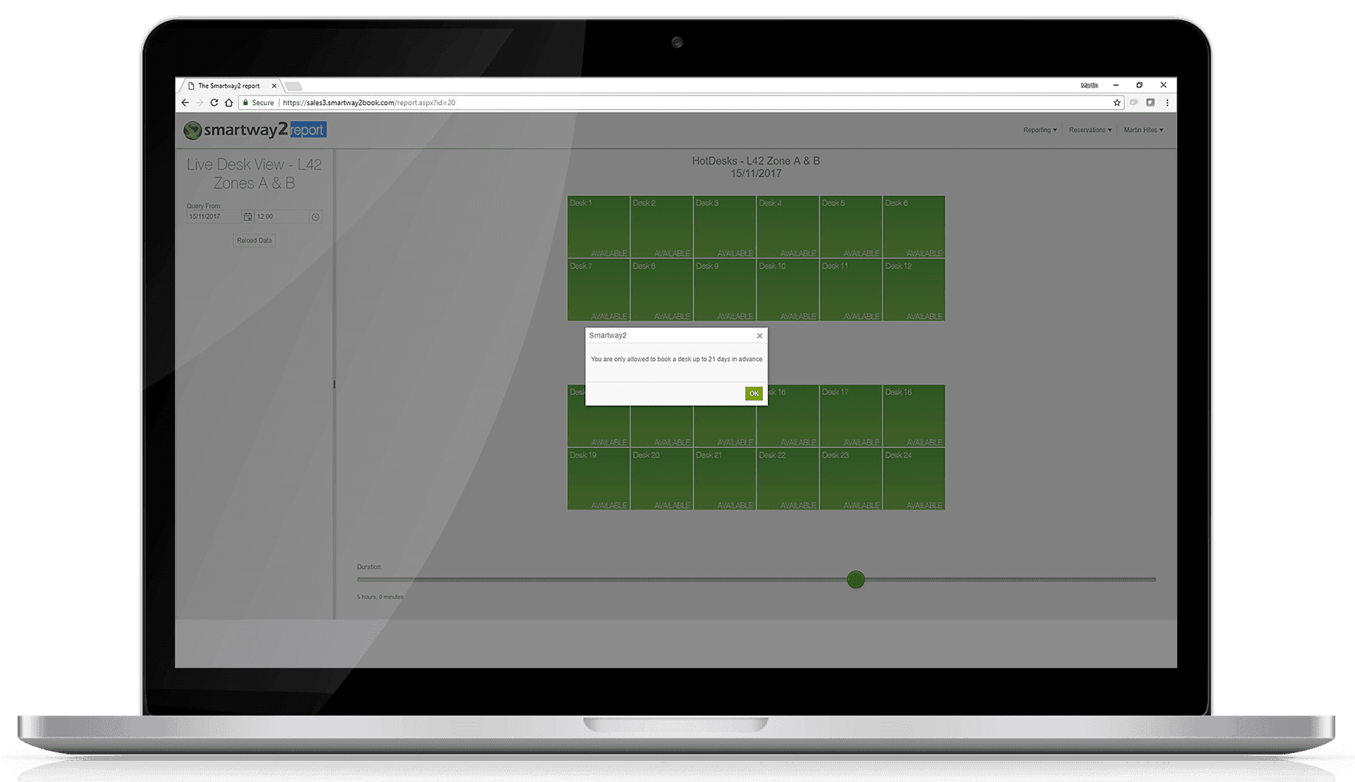 - Set a 21 day advance desk booking window