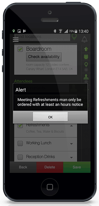 Rules encourage users to adapt to processes and workflow that make sense for everyone. For example, Smartway2 users will shift their meeting by an hour or choose a different room, to give hospitality time to prepare tea and biscuits. Rather than calling or emailing them with an impossible last-minute request.